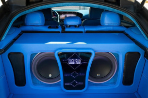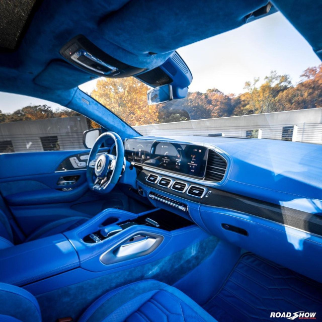Alles andere als gewöhnlich ist auch das Tuning dieses Mercedes-AMG GLW 63 S ausgefallen. Ein 100prozentiger Augenschmeichler ist der Wagen nämlich nicht. Vermutlich ist es das, was man in den USA den „touch to much“ nennt. Der Blick stört sich vermutlich eher nicht an dem schlumpfblauen Leder und Alcantara, mit dem der Innenraum und das Gepäckfach wirklich schön bezogen wurden.