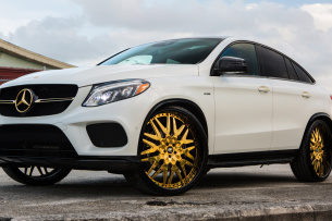 Die Vergoldung von Emblemen, Auspuffendrohren, Türgriffen, Zierleisten sowie der horizontalen Schwinge im Grill stehen dem Mercedes-Benz GLE Coupé bestens.