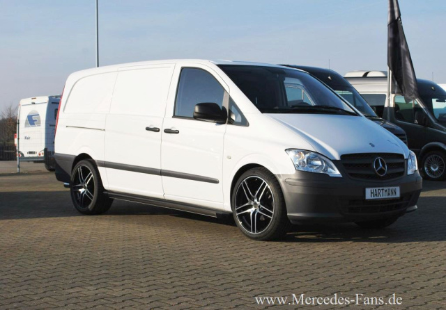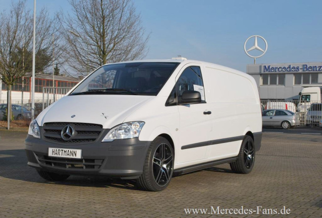 Seine VANSPORTS-Styling-Linie erweitert Hartmann Tuning nun um das bereits erwähnte Performance-Paket namens "Metro Sportster". Zu den Design-Parts, die einen Transporter wie den Mercedes Vito besser dastehen lassen, gehören Trittbretter mit Edelstahlverblendung und ein Sport-Doppelendrohr für die Serienauspuffanlage.