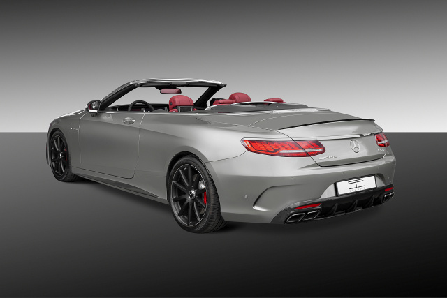 Die Waltroper spendieren dem S63 Cabriolet eine Facelift-Frontschürze, Carbon-Zierleisten aus dem AMG-Aerodynamik-Paket, Carbon-Seitenschweller, OLED-Rückleuchten, einen Carbon-Diffusor, Carbon-Außenspiegel und einen Carbon-Heckspoiler, der eigentlich nur für das S-Klasse-Coupé erhältlich ist.