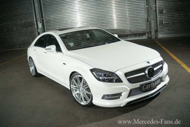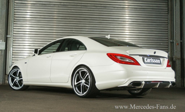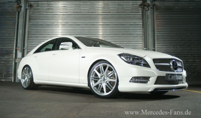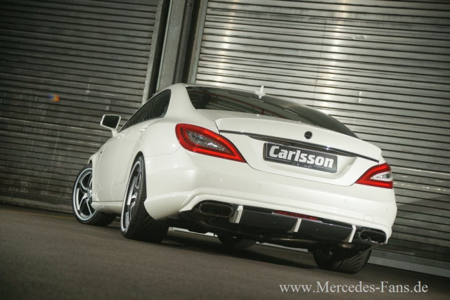 Von den 170 Debütanten, welche sich auf dem Auto Salon Genf erstmals der Weltöffentlichkeit zeigen, kommt einer aus der Automanufaktur Carlsson. Die elegante Formensprache ist das Markenzeichen der neuen Modellgeneration des Mercedes-Benz CLS (Typ C 218). Für die kleine aber feine Autoschmiede Carlsson bietet dies die Basis, um das neue Modell mit noch mehr Eleganz und Sportlichkeit zu perfektionieren. Die Coupé-Linienführung nimmt Carlsson-Chefdesigner Rolf Schepp auf und verfeinert das Exterieur mit dem umfassenden Aerodynamikpaket. Der neue Frontspoiler und die Frontspoilerlippe RS (wahlweise aus Echtcarbon) sorgen bereits für einen agilen Auftritt der luxuriösen Limousine, der von den Edelstahlgrilleinsätzen noch unterstützt wird.