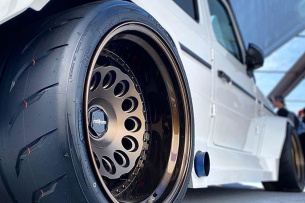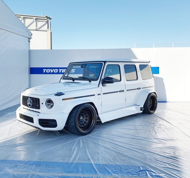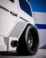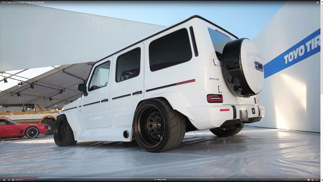 Sadistic Iron Werks ist ein US-Tuner, der sich auf Luftfahrwerke und Bodybuildung aus Metall spezialisiert hat. Handwerklich ist der komplett eiserne Mega-Breitbau nicht zu beanstanden. Da hat man sehr gute Arbeit abgeliefert. Ein auffälliger Hingucker ist der versenkte G-Klasse-Breitbau auf seine Art natürlich auch. Als Augen-Magneten wirken nicht zuletzt die Rotiform-HVN-Felge im Format 13 x 20, welche mit motorsportlichen Toyo Proxes R888R Semislicks gummiert sind. (Bilder: Toyo Tires / Sadistic Iron Werks)