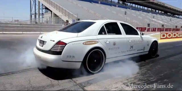 Zum sensationell glänzenden Auftritt des getunten Maybach tragen vor allem eine Hingucker-Lackierung in Mattweiß-Metallic und eine Hinhör-Soundkulisse aus einer Renntech-Abgasanlage bei. Ins Rollen kommt das Maybach-Monster übrigens auf super edlen 24-Zoll-Räder aus dem Hause Forgiato. Bei Renntech pushte mann den Maybach per Steuergerätmodifikation auf 625 PS Leistung. Den Spurt von 0-100 km/h absolviert die große Limousine in alles andere als schwerfälligen 5,2 Sekunden. Wie herrlich der Maybach von Renntech den Asphalt zum Beben bringen kann, zeigt das Video. Der Film macht Sie zu Augen- und Ohrenzeuge eines nicht gerade alltäglichen Maybach.