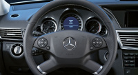 Sportlich und edel präsentiert sich das MercedesSport Lenkrad mit perforiertem Leder. Schaltpaddles für Automatikgetriebe erlauben schnelle Gangwechsel. Auch für die optionale Lenkradheizung werden sich Mercedes-Fahrer der E-Klasse Limousine und T-Modell erwärmen können.