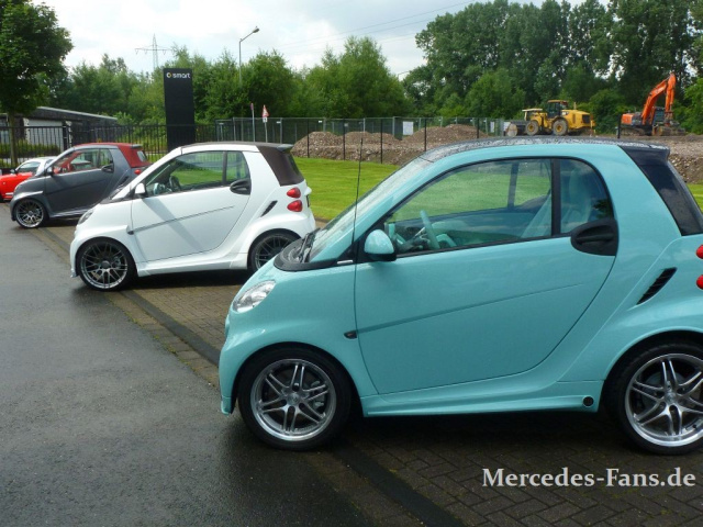 Wer wäre da ein geeigneterer Partner als die Firma BRABUS, die vor der Gründung der smart-BRABUS GmbH im Jahr 2002 bereits 25 Jahre als Mercedes-Veredler erfolgreich auf dem Markt agierte und sich überraschenderweise auch mit dem Thema smart befasste. Warum, wird deutlich, wenn man der kleinen Festrede von Prof. h.c. Bodo Buschmann lauscht: Ich liebe dieses Auto, ich bin von dem pfiffigen Konzept überzeugt und ich kann selbst prima drin sitzen!