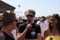 Aber Sarah Elßer, Anna Fleischhauer, Ralf Weber, Luca Felshart und unser MIB Rallye-Moderator Dirk Krühler, der kurzfristig für den verhinderten Clemens V. einsprang, liefen zur Höchstform auf, bis die Mikros qualmten und die Bühne brannte. Letzteres übrigens tatsächlich, als ein Teilnehmer mit auf Hochglanz polierten, konkaven Felgen auf den "Roten Teppich" fuhr. Das Rad bündelte das Licht wie ein Parabolspiegel und schoss einen heißen Lichtstrahl auf den roten Teppich, der allerdings nur ein bisschen geschmurgelt hat und sich nicht wirklich in Brand setzen ließ. Also keine Aufregung, wir hatten alles im Griff.