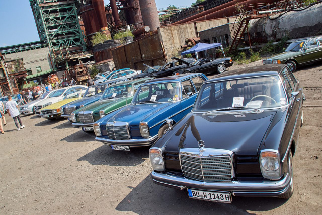 Noch älter waren da das 170V Polizei-Cabrio, das wunderschöne 220 S-Ponton Cabrio in schwarz-silber, die seltene 300 SE Heckflosse oder die hellblaue W116 S-Klasse des Setra-Gründers Kässbohrer. Das Auto hat noch nicht einmal elektrische Fensterheber, geschweige denn einen langen Radstand. Sehr schön war auch die Armada an Heckflossen Coupés und Cabrios.