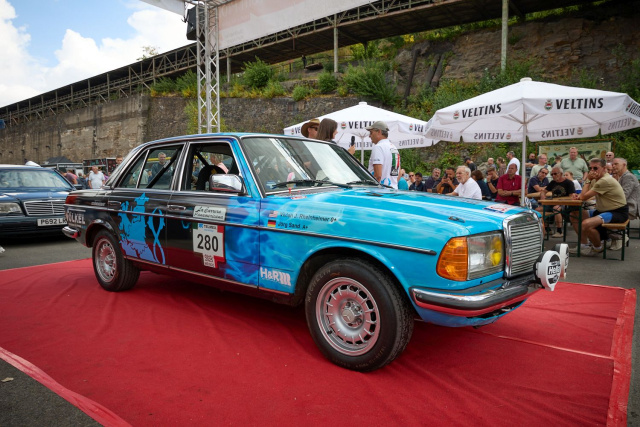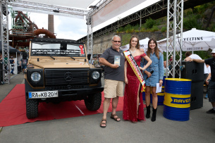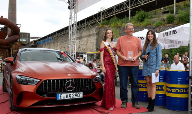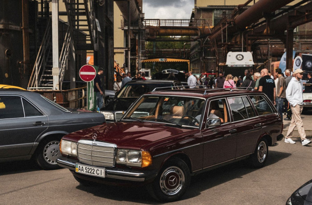 Die Ukrainer hatten u.a. ein S123 T-Modell mit auf die Henrichshütte gebracht, dessen Perfektion auch Moderator Ralf tief beeindruckte: "Hier ist alles bis in kleinste Detail neu oder durch neuwertige Teile ersetzt. Das ist schon bemerkenswert." Aber auch die Erbauer sind begeistert: „Schön, dass ich hier so viele Gleichgesinnte treffe – wir sind über 2.000 Kilometer gefahren, und es hat sich jede Minute gelohnt“, schwärmt Viktor, ein Sammler aus Kiew, während er liebevoll über den Kotflügel des einzigartigen T-Modells streicht.