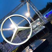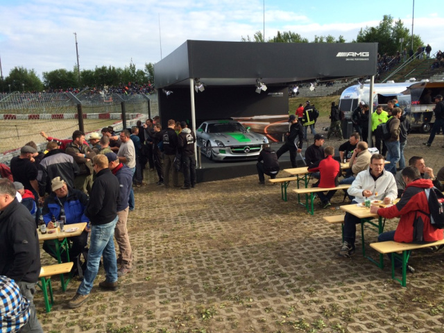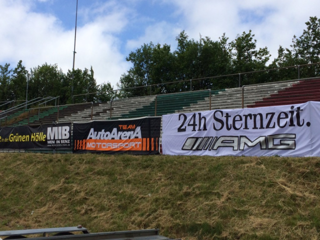 Ein leuchtender Stern und einige Spruchbanner machten deutlich, dass die Müllenbachschleife in diesem Jahr fest in der Hand der Mercedes-Fans war. Die ganze Müllenbachschleife? Nein, aber ein Areal, groß genug für ein Festzelt, eine Panorama-Terrasse mit Liegestühlen, die einen sensationellen Blick auf einen der interessantesten Streckenabschnitte des Rings erlaubte und ein leuchtender, überdimensionaler Stern direkt an der Strecke.