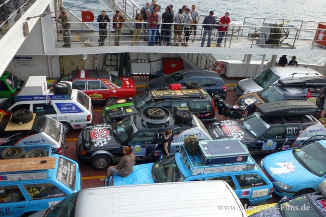 Kein leichtes Unterfangen in einer 18 Millionen Metropole. Doch das Team vom GTC war unter den ersten Zehn, die das begehrte Schiff erreichen - und damit den Europäischen Kontinent verlassen konnte! Nächste Herausforderung: "Fahrt zum Seka-Park im Ort Kocaeli"! Dass es sich bei diesem Ort quasi um "die Stadt, die es nicht gibt" handelt, war der Kniff an der Aufgabe, erst durch Fragen von Einheimischen konnte herausgefunden, dass es sich dabei um den alten Namen der Stadt "Izmet" handelt. Als sich heraus stellte, dass sich alle zuerst ankommenden Teams verfahren hatten, fackelte die türkische Polizei nicht lange und geleitete die knapp 200 Fahrzeuge, die zuerst ankamen, zum richtigen Platz, wo dann die Zelte aufgeschlagen und der Tag beendet wurde.