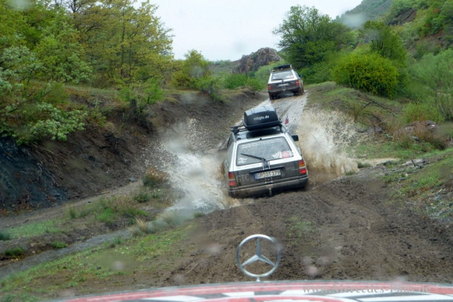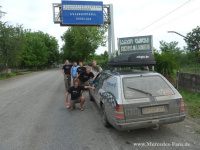 Und obwohl noch mitten in der Zivilisation begann das Abenteuer bereits in Serbien. Es galt, die drei schwarzen Boliden zu tanken: Die erste Tankstelle obwohl riesengroß - hatte kein Benzin mehr, die zweite war ganz begeistert, "drei Daimler" mit großem Tank füllen zu dürfen - hatte dann aber nach 18 Litern auch nichts mehr, und erst die dritte Tankstelle konnte dann weitere 110 Liter Sprit verkaufen die genug "Zündstoff" für die restliche Route nach Rumänien lieferte. Durch das Eiserne Tor (entlang der Donau) ging es über Schotterpisten, Fahrrinnen und Schlaglochstrecken weiter. Nach einer für Mensch und Maschine äußerst strapaziösen Fahrt konnten sich die tapferen Fahrer dann schließlich um 05:30 Uhr (lokaler Zeit) in einem kleinen Hotel schlafen legen!