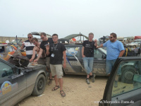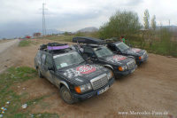 Das Teamkollektiv vom Round Table - das mit Unterstützung des Mercedes-Benz Gebrauchtteile Center die 6.000km lange Strecke bis Baku zurücklegt - steht nun schon in Aserbaidschan 300 km vor dem Ziel, und Schwermut macht sich breit. Wenn man miteinander in den nächsten Kontinent fährt, drei Zeitzonen durchquert und dies alles auf unwegsamem Gelände - dann schweißt dies Mensch und Maschine zusammen - wen mag es da verwundern, wenn es den Männern schwerfällt daran zu denken, sich von den Fahrzeugen bald zu trennen? Denn ab Baku verlassen die Straßenkrieger den Asphalt und setzen die Reise per Flugzeug fort - die Autos werden dann verschenkt!