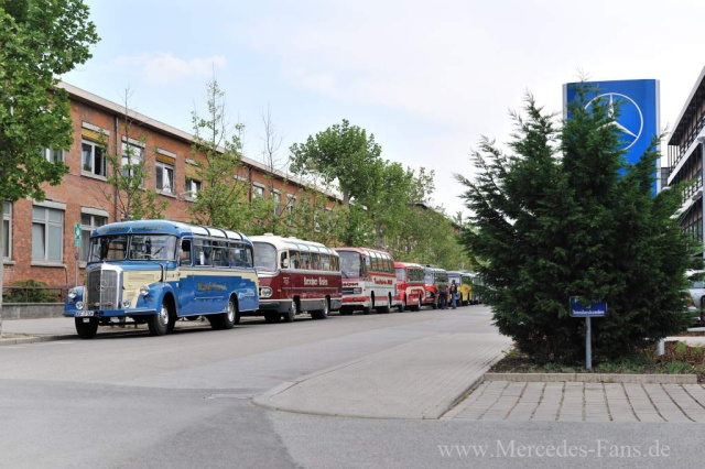 Als sich am 29. April 135 Oldtimerbusse aus ganz Europa anlässlich des 3. Europatreffen historischer Omnibusse in Mannheim einfanden, kehrten viele der Fahrzeuge in ihr eigentliches Ursprungsland zurück. Baden-Württemberg hat gerade mit dem Omnibuswerk in Mannheim, den Werken Auwärter in Stuttgart, Kässbohrer in Ulm und Vetter in Fellbach lebendige Omnibusgeschichte geschrieben. Konstantinos Tsiknas, Leiter Verkauf Deutschland Mercedes-Benz Omnibusse EvoBus GmbH, hieß die rund 250 Teilnehmer sowie neun Mercedes-Benz Busse der Baujahre 1948 bis 1972 im historischen Werk auf dem Lutzenberg, willkommen.
