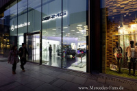 Zur Wachstumsstrategie "AMG Performance 50 zählt ebenso die Erschließung neuer dynamischer Märkte. Großes Potenzial für steigende Nachfrage sieht AMG in Ländern wie China, Russland, Korea und Brasilien. Eine zentrale Rolle dabei spielen die AMG Performance Center: Seit 2008 wurden weltweit 270 Center in 24 Ländern eröffnet, bis 2017 werden es rund 350 Performance Center sein. Ein aktuelles Beispiel für die regionale Wachstumsstrategie ist China: Das am 22. April 2012 neu eröffnete AMG Performance Center Beijing Sanlitun liegt in einer exklusiven Toplage in der Luxus-Shopping-Mall Sanlitun Village North und spiegelt die Vorreiterrolle von AMG in Bezug auf Design und Technologie in einem modernen Rahmen wider. Anders als bisher ist der neue Store in Peking nicht als Shop-in-Shop-System in einem Mercedes-Benz Autohaus integriert. Stattdessen stehen beim sogenannten Stand-alone-Konzept ausschließlich die Produkte und Themenwelten der Performance-Marke AMG im Fokus.
