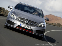Der A 45 AMG wird seine Weltpremiere im ersten Quartal 2013 feiern. Weitere AMG High-Performance-Kompaktwagen mit unterschiedlichen Charaktereigenschaften stehen bereits in den Startlöchern und folgen dem A 45 AMG. Bei der Entwicklung der kompakten Mercedes-Benz Fahrzeugarchitektur für Front- und Allradantrieb war Mercedes-AMG von Anfang an integriert. Bereits heute verfügen die dynamischsten Versionen der A-Klasse, der A 250 Sport und der A 220 CDI Sport beide engineered by AMG über eine von AMG entwickelte Vorderachse und das dazu entsprechend abgestimmte Fahrwerk, AMG Leichtmetallräder im 5-Speichen-Design mit Bereifung 235/40 R 18 rundum, Hochglanz schwarz lackiert und glanzgedreht sowie rot lackierte Bremssättel. Die Bezeichnung Sport kennzeichnet in der Mercedes-Benz Produktpalette jeweils die fahrdynamischste Version der Baureihe.
