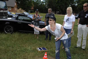 Geht es bei vielen der anderen Club-Events um die Performance der AMG-Fahrzeuge, drehte sich hier alles um die geistige und körperliche Vielseitigkeit von Fahrer und Beifahrer. Es musste innerhalb der nächsten sechs Stunden nicht nur eine Strecke von ca. 120 km anhand eines Roadbooks abgefahren werden, nein, es mussten auch an vier Stationen verschiedenste Aufgaben gelöst werden und - damit noch nicht genug - viele Fragen zur Landschaft, den passierten Gebäuden und sonstigem gelöst werden. An den Stationen waren Geschicklichkeit, Schätzvermögen und ein klein wenig Sportlichkeit gefordert. Viele meisterten einen Großteil der Aufgaben mit Bravour, aber ausnahmslos alle hatten ganz viel Spaß.