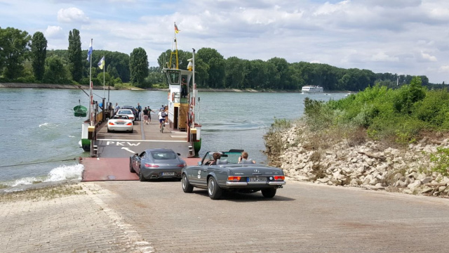 Der erste Rallye-Tag führte die Teilnehmer durch das Neckartal vorbei an dem durchaus wörtlich zu nehmenden Mückenloch, Heidelberg über das Carl-Benz Museum in Ladenburg hin nach Sindelfingen. Vorher galt es noch, Abschnitte der historischen Bertha Benz Memorial Route zu befahren und mit der Brühler Fähre den Rhein zu überqueren. Den Tag haben wir dann im Legenden-Club in Sindelfingen ausklingen lassen. Gastgeber Klaus Hagenlocher hatte inmitten zahlreicher Klassiker gemütlich eindecken lassen. Und Dirk Kühler verkündete die Tagessieger. Als sich herausstellte, dass die Gesamtsieger des letzten Jahres, Patrik Gottwick und Nikolaus Moehren, auf ihrem 300 SEL 6.3 schon wieder die Tagesbesten waren, lag die Vermutung nahe, dass sie sich auf eine erfolgreiche Titelverteidigung eingestellt hatten.