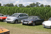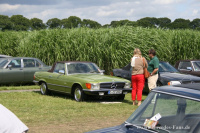 Auf dem vorgelagerten Miscanthusfeld fanden sich nicht nur vereinzelte Sternfahrer sondern auf einer großen Rasenfläche ein eigener Mercedes-Club Bereich, der von Pagode über SL R107 und W123 bis hin zum S-Klasse Club reichte. Der Mercedes-Fan hatte somit einiges zum Gucken und Fotografieren. Leider reihten sich auch einige Neufahrzeuge unter die Oldtimer und störten das Bild des Klassiker-Events.