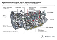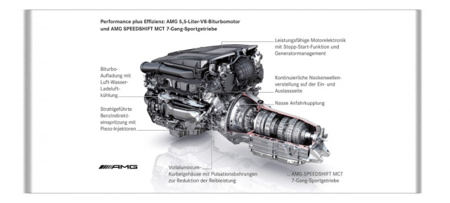 AMG SPEEDSHIFT MCT das steht für Multi Clutch Technology und zeigt, dass im Inneren des Getriebegehäuses Kupplungselemente zur Kraftübertragung zum Einsatz kommen. Das sportliche Fahrgefühl eines klassischen, manuellen Getriebes wurde mit den Genen einer komfortorientierten Automatik gekreuzt. Der altbekannte Drehmomentwandler fiel der technologischen Evolution zum Opfer und wurde durch eine äußerst kompakte, nasse Anfahrkupplung ersetzt. Die läuft im Ölbad und verhilft dank ihrer geringen rotarischen Massenträgheit dem Getriebe zu einem dynamischen Ansprechverhalten ohne die typischen Verluste eines Wandlers. Dank ausgiebigen Einsatzes von Magnesium in der Fertigung des Getriebegehäuses bringt das AMG SPEEDSHIFT MCT gerade einmal 80 kg auf die Waage. Das spart Sprit.