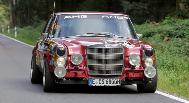 Die "Rote Sau" rast vor 50 Jahren zur Sensation von Spa-Francorchamps. Dies hier ist ein Nachbau der legendären „Roten Sau“, Klassensieger in Spa 1971, Fahrer Hans Heyer und Clemens Schickentanz. Der Wagen entstand in Beratung mit Clemens Schickentanz und ist soweit wie möglich, jedoch mit geringfügigen Modernisierungen, dem Original nachempfunden. Basis ist ein Serienfahrzeug Mercedes-Benz 300 SEL 6.3 aus dem Jahr 1970. Nach kompletter Zerlegung wurde das Fahrzeug nach alten Plänen neu aufgebaut. Fahrwerk, Bremsanlage sowie Motor sind erheblich geändert und die Automatik durch ein Schaltgetriebe ersetzt worden. (Foto: Dieter Debo/ E-Mags Media GmbH)