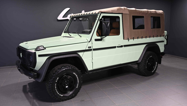 Eine schicke Alternative zu einer G-Klasse bietet der Puch 230 GE von Lorinser Classic. Die Puchs von Lorinser stammen ursprünglich vom Schweizer Militär. Der Vierzylinder-Motor mit 2.297 ccm Hubraum leistet im 230 GE 116 PS, die Kraftübertragung übernimmt ein Viergang-Automatikgetriebe. Hinten befindet sich eine Differentialsperre, dazu gibt es Allrad mit zusätzlicher Getriebeunterstützung. Bei Lorinser Classic finden sich verschiedene Puchs mit verschiedenen Farb-Kombinationen. Dieses Modell kommt in mattem Weißgrün mit einer dattelfarbenen Innenausstattung. Der Unterboden wurde trockeneisgestrahlt und konserviert. Der Geländewagen kommt mit radikalen 16 Zoll Dotz Stahlfelgen und Goodrich All-Terrain Bereifung. Wer auf der Suche nach einem schicken Puch ist, sollte mal einen Blick in das Sortiment von Lorinser Classic werfen. (Foto: Lorinser)