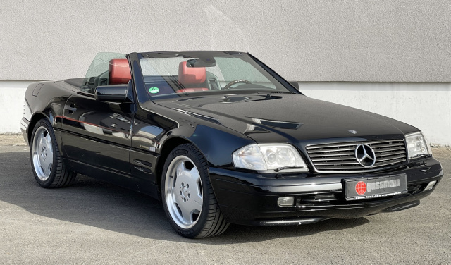 Dieser Roadster der Baureihe R129 ist etwas ganz Besonderes. Der SL 500 ist nämlich eine "Special Edition" und damit auf 500 Exemplare limitiert. Im Jahr 1998 kommt die SL "Special Edition" auf den Markt, die für alle Typen außer dem SL 60 AMG erhältlich ist; 500 Stück entstehen. Als Außenfarbe ist Obsidianschwarz gewählt, die Ledersitze sind in designo-Rot mit schwarzen Ziernähten ausgeführt. Dieses Exemplar kommt mit 5 Liter-V8 und hat erst 56.699 km gelaufen. Die 320 PS werden per Automatikgetriebe an die Hinterachse übertragen. Damit ist der SL von 1999 auch heute noch ein echter Sportwagen! (Foto: Gassmann GmbH)