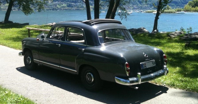 Das Fahrzeug befindet sich in unrestauriertem Originalzustand und ist seit Erstzulassung im Jahr 1960 erst knapp 45.000 km gefahren. Das Webasto Faltdach wurde ab Werk bestellt, was bei einem Diesel seinerzeit eine Besonderheit war. Der Bezug des Faltdachs ist noch der erste, wie auch Sitzbezüge und „Teppiche“ – hier eher Gummimatten - nie ausgetauscht wurden. Auch die Kokosmatten dürften bereits seit Erstzulassung im Auto liegen. Der Erstbesitzer war Pfarrer, der gerne mal eine Zigarre rauchte. …seine letzte, die er in seinem Ponton rauchte, befand sich sogar bei Kauf durch den aktuellen Besitzer im Jahr 2011 noch im Aschenbecher. Dieses Auto wurde behutsam konserviert und 2011 durch Ostendorf Classic technisch in einen perfekten Zustand versetzt. Damit er nicht einrostet, war sein Besitzer mit ihm sogar schon zweimal am Lago Maggiore. 50PS können wirklich Spaß machen, denn dieser Ponton fährt, wie ein Neuwagen und entschleunigt dabei ungemein.(Foto: RaumLenker MotorConsult)