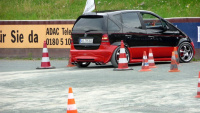 Eine andere Aufgabe war, eine ca. 10 Meter lange, etwa 30 Grad steile Auffahrt rückwärts in einem Zug hochzufahren und vor drei Leitkegeln zum Stehen zu kommen. Der Fahrtrainer, der normalerweise Fahrsicherheitskurse vom ADAC leitet, war gehörig beeindruckt von den Fahrkünsten der Elchfans! Die meisten Teilnehmer solcher Sicherheitskurse hätten normalerweise keine Ahnung davon, wo ihr Auto anfängt und wo es aufhört.
