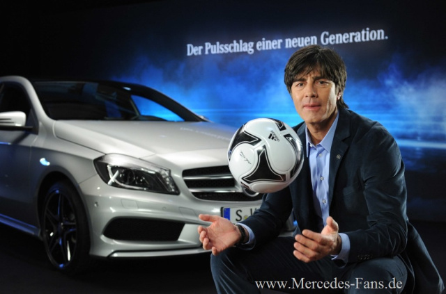Die erst kürzlich ebenfalls unter dem Claim: Der Pulsschlag einer neuen Generation vorgestellte A-Klasse ist von Grund auf neu konzipiert und setzt in der Kompaktklasse optische und technische Maßstäbe. Mit seinem mutigen und sportlichen Design passt das Auto einfach perfekt zu unseren jungen und erfolgshungrigen Spielern. Die A-Klasse ist mit ihrem dynamischen Auftritt auch ein Sinnbild für die Power des Teams, sagt Nationalmannschafts-Manager Oliver Bierhoff.