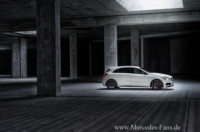 "Mercedes-Benz ist auf der Jagd. Und die A-Klasse ist unsere Waffe", sagte Dr. Dieter Zetsche bei der Präsentation der neuen A-Klasse von Mercedes-Benz auf dem Genfer Auto Salon 2012. Ein Jahr später bedarf diese Aussage einer dringenden Aktualisierung: Denn auf dem Auto Salon in Genf 2013 wird die von AMG gepowerte neue A-Klasse Premiere feiern. Der Mercedes A 45 AMG geht mit 360 PS in die Offensive. Der neue Mercedes A45 AMG ist ein Auto für die Pole Position und ein Meilenstein in der Geschichte der Marke mit dem Stern: Erstmals in der über 45-jährigen Unternehmensgeschichte bietet die Performance-Marke von Mercedes-Benz ein faszinierendes High-Performance-Fahrzeug in der Kompaktklasse an. Mit dem A 45 AMG startet Mercedes-AMG in eine neue Ära.