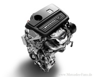 Die Voraussetzung für diese beeindruckenden Werte ist das von Mercedes-AMG geschnürte Hightech-Paket. Als High-Performance-Aggregat der BlueDIRECT Motorenfamilie verfügt der AMG 2,0-Liter-Vierzylinder-Turbomotor über die strahlgeführte Benzin-Direkteinspritzung mit zentral in den vier Brennräumen platzierten Piezo-Injektoren. Die Kombination aus Mehrfacheinspritzung und Mehrfachfunkenzündung verbessert die Kraftstoffausnutzung und steigert den thermodynamischen Wirkungsgrad deutlich, was zu geringen Abgas-Emissionen führt. Weitere Highlights sind: Vollaluminium-Kurbelgehäuse in Kokillen-Sandgusstechnik, gewichtsoptimierter Kurbeltrieb mit geschmiedeter Stahl-kurbelwelle und Schmiedekolben mit reibleistungsoptimierten Kolbenringen, NANOSLIDE Laufbahn-Technologie, Luft-Wasser-Ladeluftkühlung, Generatormanagement sowie ECO Start-Stopp-Funktion.