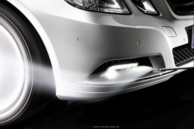 Die neue E-Klasse, die mit einem cw-Wert von 0,25 bereits Klassenprimus ist, trägt zusätzlich eine elektropneumatisch geregelte Lüfterjalousie. Wird der Motor wenig gefordert, schließen sich ihre Lamellen, was den Bug des Wagens noch strömungsgünstiger im Wind liegen lässt. Signalisieren die Sensoren einen höheren Kühlluftbedarf, werden die Lamellen wieder entsprechend geöffnet.