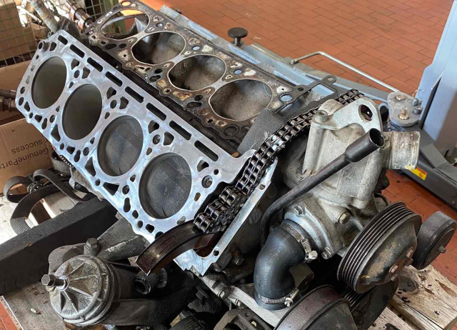 Wie bereits geschildert, werden wir den Benz mithilfe tatkräftiger Unterstützung wieder schick machen und ihm zu neuem Glanz verhelfen. Natürlich nehmen wir Euch bei dieser Story alle mit und werden hier in einem speziellen „Blog“ und bei Instagram & Facebook über den Fortgang des Projekts berichten. Jetzt geht es an den Achtzylinder-Treibsatz.