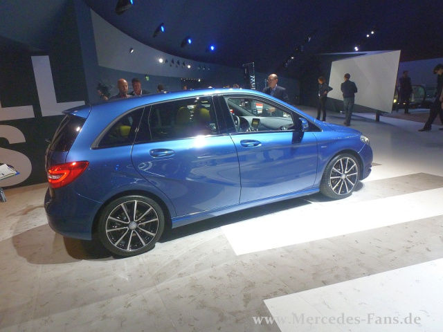 Das haben die Daimler-Jungs schon ziemlich gut gemacht: Weltpremiere und dann stellen sie die Polizei- und die Taxi-Version in AMG-Optik auf den Stand. AMG-Look für die B-Klasse? Sie ganz so aus, wenn man sich die 18-Sportfelgen und die sportliche Formgebung der Frontschürze anschaut. Sieht ausgesprochen gut aus. Der Haken: ein AMG-Paket wird es für die B-Klasse nicht geben.