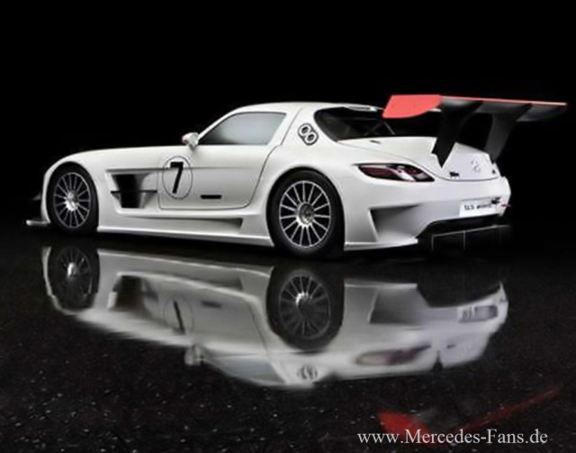 Der zum Tourenwagen transformierte SLS AMG GT-3 leistet 600 PS (29 PS mehr als die Serie) und soll in der GT-Serie eingesetzt werden.