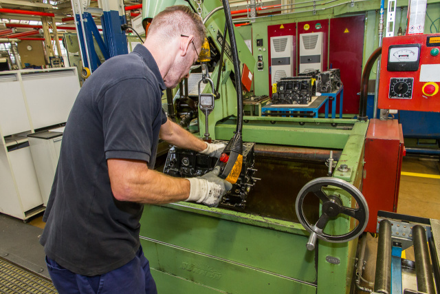Da Mercedes-Benz Original-Tauschteile sowohl durch ein attraktives Preis-/Leistungsverhältnis als auch durch Umweltfreundlichkeit glänzen, nimmt man den Kolben diese Arbeit ab und führt den gehonten Block dem Bürsten zu. Diese Bürsten bearbeiten nun ebenfalls die Zylinder-Innenwände und glätten die Oberfläche. Wichtig dabei: Es erfolgt kein kompletter Glattschliff, da der Ölfilm an minimalsten Unebenheiten am besten haftet und so optimale Gleit- und Notlaufeigenschaften gewährleistet sind. Mercedes-Benz Original-Tauschteile: Ökologisch, ökonomisch, einfach klasse!