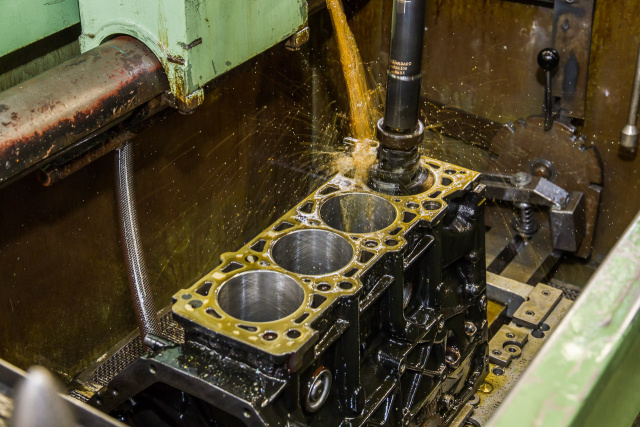 Durch das Honen werden die Zylinder im Motor-Inneren wieder blank