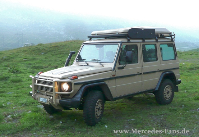 Der G wird von einem V6-Diesel mit drei Litern Hubraum angetrieben, der CDI erfüllt die Euro 4-Normen und leistet 183 PS und stemmt 400 Nm auf die Kurbelwelle. Mit rund 14 Litern Kraftstoff auf 100 Kilometer Fahrstrecke soll der Mercedes mit seinem Fünfgang-Schaltgetriebe auskommen. Drei Differenzialsperren hat der G, alle drei sind hundertprozentig sperrbar. Wenn es mal durchs Wasser geht hilft eine hochgelegte Luftansaugung von Mercedes-Benz, die außerdem auch vor Staub schützen soll. Beadlock-Felgen erlauben eine Absenkung des Luftdrucks bis auf 0,5 Bar ohne dass der Reifen von der Felge rutscht. So ist ausreichend Traktion auf Schnee oder Sand gewährleistet. Damit auch wieder Luft in die Reifen kommt, sind zwei Luft-Kompressoren und ein Luft-Tank an Bord. Zwei kleineren Kompressoren wurde der Vorzug vor einem großen gegeben, so ist bei Ausfall eines Geräts immer noch ein weiteres in Reserve.
