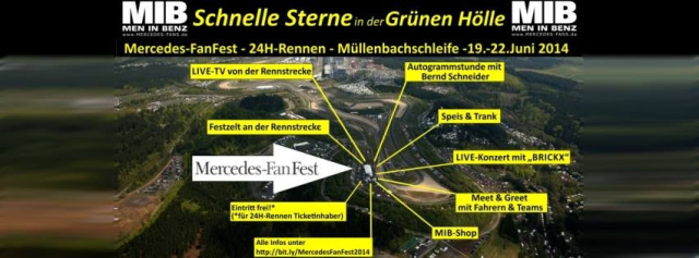 Wenn Sie das 24 Stunden-Rennen einmal hautnah erleben wollen, kommen Sie doch direkt zum Mercedes-FanFest an der Müllenbachschleife! Wir haben einen Top-Platz direkt an der Strecke.