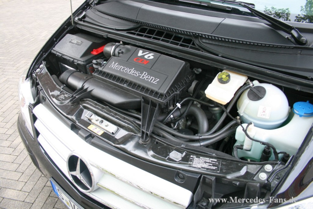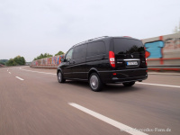 Den Sprint auf 100 km/h vollzieht der Viano in 9,1 Sekunden und die Höchstgeschwindigkeit ist allerdings bei 201 km/h gedrosselt. Die Optik des schwarzen Vianos mit den kleinen Tagfahrleuchten sorgt für ein gewisses Überholprestige im Rückspiegel von PKWs und die linke Spur ist unser!