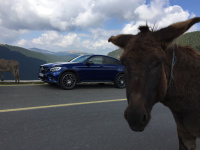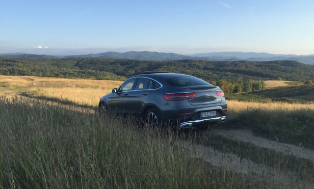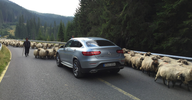 Da wir am nächsten Tag in Richtung Transalpina fahren sollten, entschieden wir uns auf einen Mercedes-Benz GLC Coupé 300 mit 2.0 Liter Benziner und 245 PS umzusteigen. Das GLC 300 Coupé, dessen zwei Liter 4-Zylinder zügig und agil am Gas hängt, erledigt den Sprint von 0-100 km/h in 6,5 s, wobei das 9G‑TRONIC Automatik-Getriebe die 245 PS und 370 Nm schnell und butterweich schaltend perfekt an die Räder brachte. Auch ein leichtes „Rotzen“ aus dem Auspuff war zu hören. Das macht Spaß! Vor allem wenn die Serpentinstraßen hoch und runter gehen, enge Kurven und kurze Geraden hervorbringen.