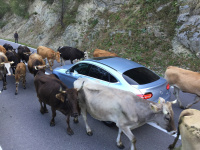 Nachdem wir die Transalpina hinter uns gelassen hatten, ging es wieder steil hinauf. Die auch bei Touristen sehr beliebte Transfaragasan ist ein Anstieg auf 2042 Meter. Auf dem Weg dorthin ließen wir einige Autos zurück, denen es sichtbar an Kühlwasser mangelte. Auf dem Weg zum höchsten Punkt, schafften wir es nach 73 Kilometern einen Durchschnittsverbrauch von 19,6 Litern zu erreichen. Schande über uns! Aber nun könnt ihr euch vielleicht vorstellen, wie steil der Anstieg ist und wieviel Spaß es macht, den Allrad durch die Kurven zu jagen. Der 4-Zylinder schob flott vorwärts, allerdings wollte er bei Laune, d.h. auf Drehzahl gehalten werden, und nach oben raus wirkte er trotz seiner Leistung dann doch etwas angestrengt. Dennoch war der Fahrspaß – zumindest auf dem Fahrersitz – enorm!