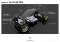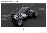 Der BlueZero F-Cell ist die Brennstoffzellen-Version, die eine Reichweite von bis zu 400 km schafft. Neben dem Elektromotor und der Hochleistungsbatterie sitzt noch eine Brennstoffzelle im Fahrzeugboden. Je nach Fahrsituation bezieht der blau-grüne F-Cell seine Energie aus der Batterie oder aus der Brennstoffzelle. Dank eines Bremsenergie-Rückgewinnungssystems dient der Elektromotor beim Bremsen als Generator und lädt so die Batterien wieder auf. Eine Brennstoffzelle benötigt als Kraftstoff Wasserstoff, beim Betrieb entstehen keinerlei Abgase, lediglich Wasserdampf wird emittiert.