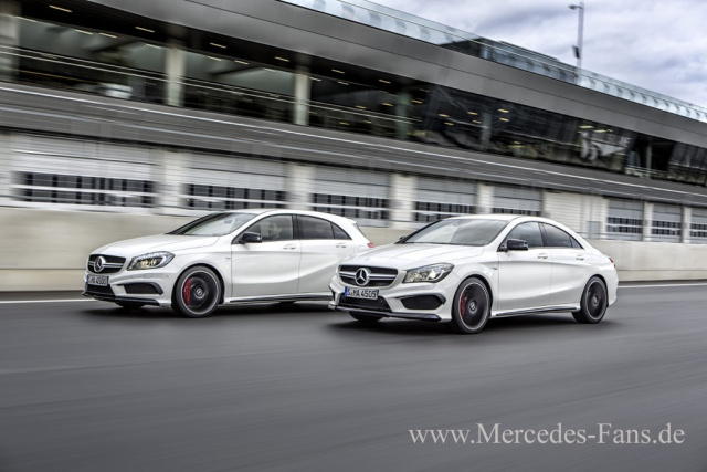 Der A 45 AMG feiert seine Markteinführung im Juni 2013, der CLA 45 AMG im September diesen Jahres.