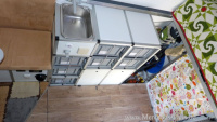 Die Kabine ist teilweise - im Bereich der Glattblech-Beplankung - lackiert. Die Eingangstür auf der Fahrerseite ist angeschrägt und erlaubt so auch bei abgesenktem Dach den Zugang zum Wohnbereich. Der Durchstieg ist zudem auch vom Fahrerhaus aus möglich. Licht und Luft lässt eine 62 x 62 Zentimeter große Dachluke in den Wohnbereich. Die verbauten Seitz-Fenster sind bei geschlossenem Dach abgedeckt und so vor Einbruchsversuchen geschützt. Geschlafen wird im "Obergeschoss", das Dachbett wird vom Fahrerhaus aus nach hinten ausgezogen.