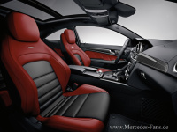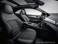 Die neuen AMG Sportsitze mit integrierten Kopfstützen, EASY-ENTRY-System und hochwertigen AMG Plaketten sind im sportlichen Design mit horizontalen Abnähern gestaltet. Serienmäßig ist die Polsterkombination ARTICO/DINAMICA schwarz. DINAMICA ist eine neuartige, atmungsaktive, griff- und haut-sympathische Kunstfaser, die sich durch geringe Emissionen und hohe Lichtechtheit auszeichnet. Während die Seitenwangen der AMG Sportsitze mit ARTICO bezogen sind, findet sich DINAMICA auf den Sitzmittelbahnen wieder. Das C 63 AMG Coupé ist ein vollwertiger Viersitzer, die Sitzanlage im Fond ist stilistisch wie die AMG Sportsitze mit quer verlaufenden Abnähern ausgeführt. Zur Erweiterung des Gepäckraums sind die Rückenlehnen im Fond serienmäßig einzeln umklappbar.