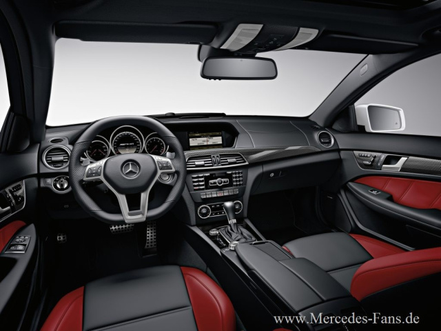 Wie schon der CLS 63 AMG ist auch das neue C 63 AMG Coupé als „Edition 1“ lieferbar: Die „Edition 1“ fasziniert durch eine spezielle Komposition hoch-wertiger Interieur-Details: Hochwertiges designo-Leder schwarz findet sich auf den AMG Sportsitzen, den Türmittelfeldern und den Armauflagen, Kontrastnähte in porzellan zieren die Sportsitze. Passend dazu präsentieren sich die Zierteile in Klavierlackoptik porzellan und das AMG Performance Lenkrad „Bicolor“ in Leder Nappa schwarz mit unterem Kranz in designo