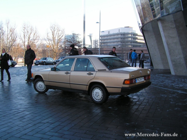 Zentral am Haupteingang des Mercedes-Benz Museum stand der Mercedes-Oldtimer, ein 190 als Vergaser mit der Fahrgestell Nr. 000454, der einen Tag vorher am 7. Dezember 2012 das ersehnte H-Kennzeichen bekommen hatte. Denn auf den Tag genau vor 30 Jahren am 07.12.1982 wurde dieser erstmals zugelassen!