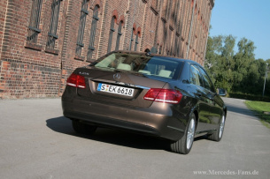 Fahrdynamisch bewegt sich die E-Klasse auf komfortablem Niveau. Das Fahren auf der Autobahn ist kaum spür- oder hörbar, dank des Fahrwerks, das auch schnelle Bodenwellen schluckt. Die Servolenkung ist elektromechanisch geregelt und fühlt sich mit ihrem direkten Ansprechverhalten sogar etwas sportlich an.