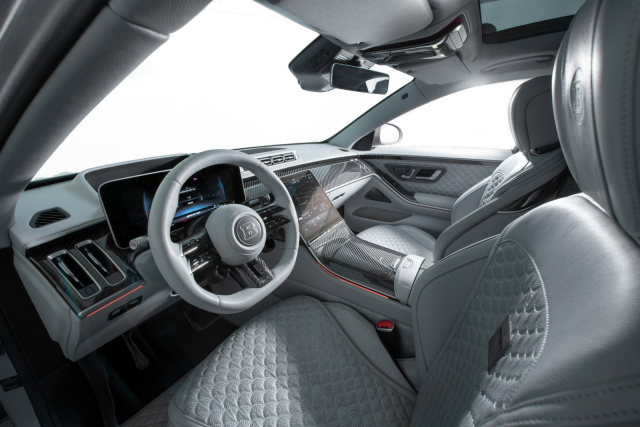 Beide Modelle bieten ein exklusives BRABUS MASTERPIECE Interieur mit hochwertig verarbeiteten Materialien und innovativen Designelementen. Das Leder in den Farben „Shadow Gray“ oder „Schiefergrau“ zieht sich durch den gesamten Innenraum, ergänzt durch präzise Biesen und Ziernähte im exakt abgestimmten Farbton. Die Einstiegsleisten und Pedale aus Carbon sowie das BRABUS Logo auf dem Lenkrad runden das edle Interieur ab. Jedes Detail zeigt die hohe Kunstfertigkeit der BRABUS-Sattlerei, die sich in allen Aspekten auf eine perfekte Verarbeitung und harmonische Optik konzentriert.